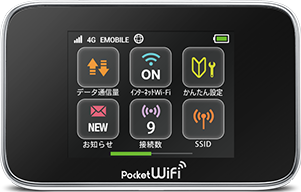 Pocket WiFiの電源ボタンを数秒押して電源を入れます。 電源を入れると、無線LAN機能が有効(ON)になり、自動的にインターネットに接続します。 |